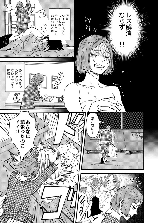 結婚3年目、夫・雄太との「レス」に悩む小日向あすか(32歳)。どうにか新婚当時のラブラブだったころに戻りたいと思うものの夫を誘っても断られるばかり……。日々奮闘する中で手に入れた“あるモノ”の力でタイムリープの力を手に入れた!突如手にした過去へ戻る力で、最愛の夫との夜の営みを復活させることはできるのか?