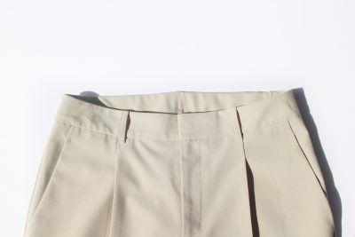 このパンツ、ウエストの後ろが隠しゴムになっていて、後ろ姿がきれいなんです!サイズ展開が豊富だからこそできることだと思うし、ジャケットを着たら見えない部分なのにこだわって作っているのがすごいと思います。