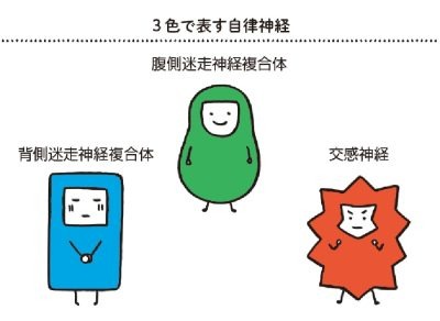吉里氏がこの3つの自律神経を赤・青・緑の3色で表現し、さらに独自の“ポリ語”を使って、体と心の調子を整える方法をわかりやすく解説した著書では、イライラ、不安、無気力、トラウマなど、さまざまな負の感情からラクになるメソッドが紹介されています。