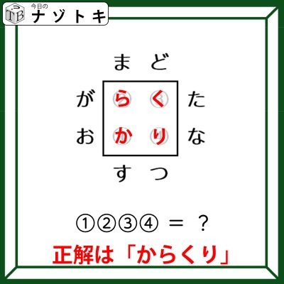 今日はクロスしてできる4個の単語から答えを考えるナゾトキです。