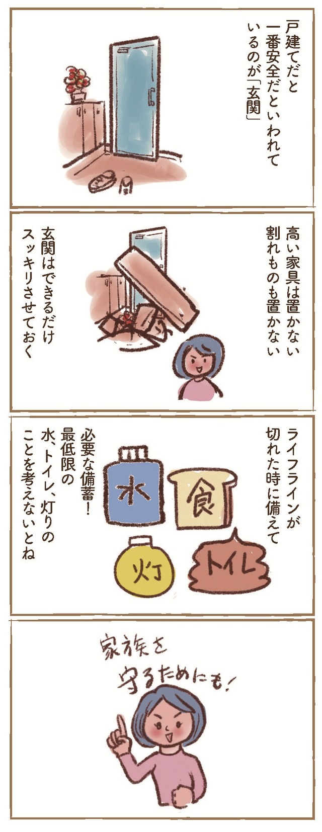 「緊急避難用」と「避難生活用」非常持ち出し袋は2種類あるといい?ペット用も準備【大切な「いのち」と「お金」を守る マンガ 防災&防犯ブック #7】