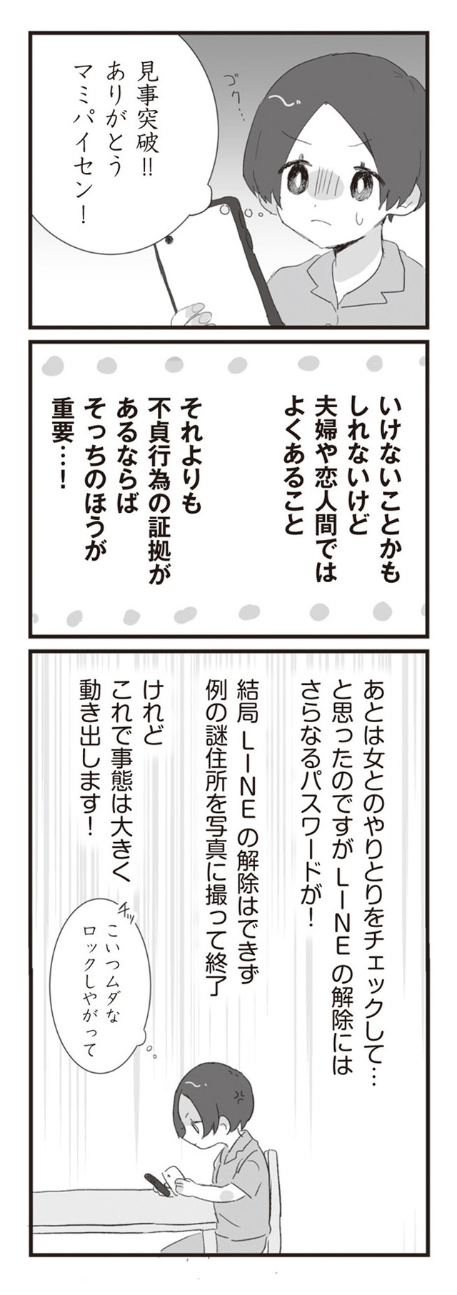 身分を明かさず旦那の浮気相手とLINE友達になり、恋愛相談に乗ると旦那が偽装離婚の計画を企てていることを知る。
