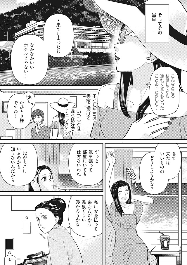 「出張」と嘘をつく夫のあとを追い、不倫旅行の現場を目撃する美奈子。