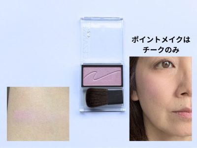 「ブレンドカラーチーク 02 ムードピンク」(税込価格781円)は、本来なら40代にとっては鬼門的なカラー。蛍光っぽい青みピンクで、肌から浮きやすく、若作り感が出る可能性があります。