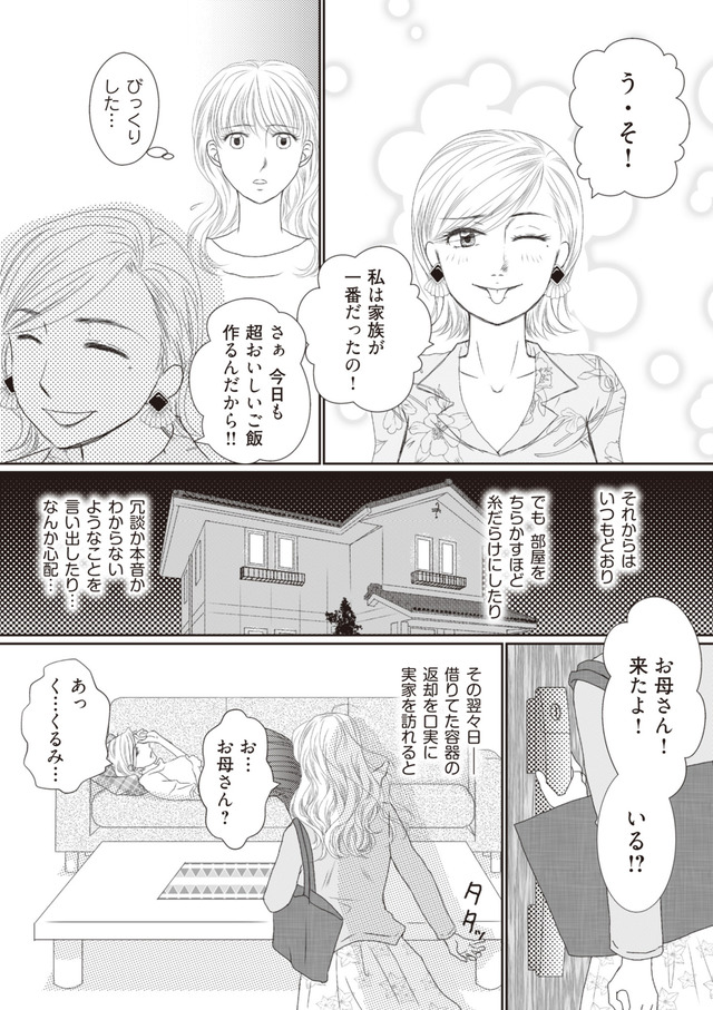 動揺を隠せない娘と、必死に誤魔化そうとする母。