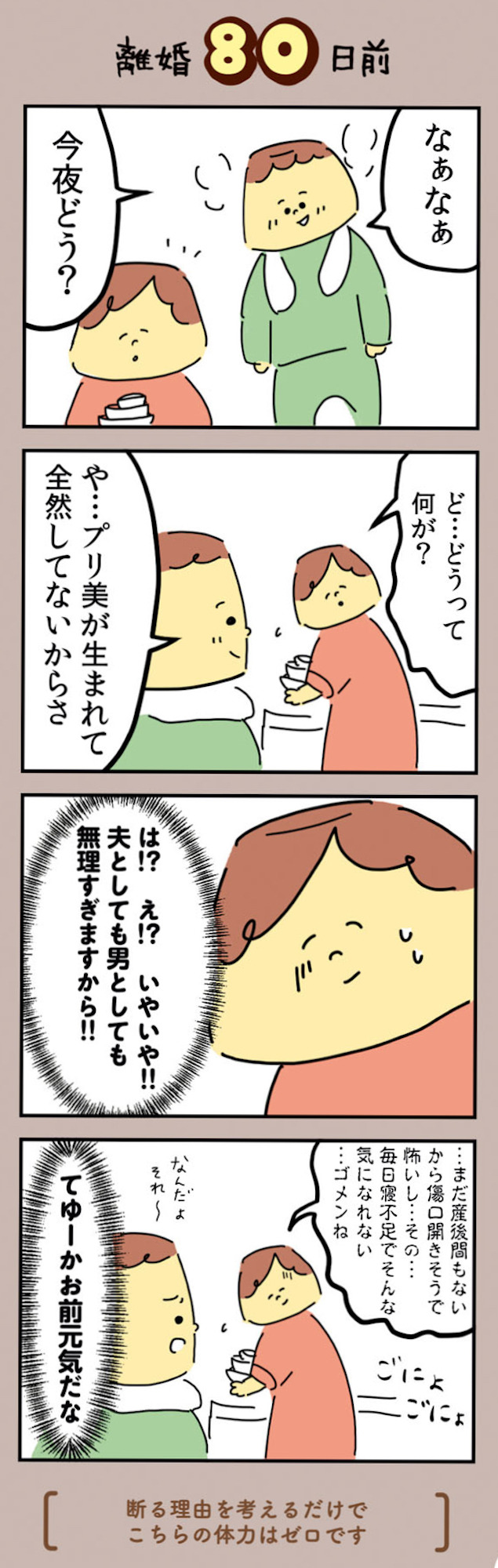 夫のことが「生理的に無理」になってしまったプリ子は、離婚を決意する。