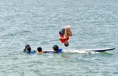 「ぶんぶんリトリート」で海でバク転する福島のお子さん