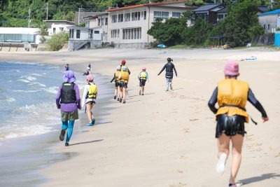 糸島の海を走る子どもたち