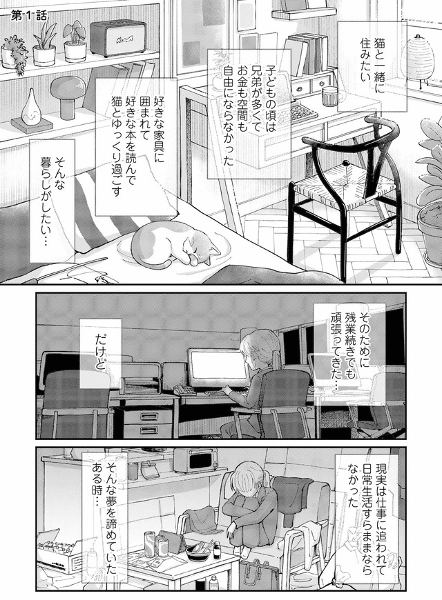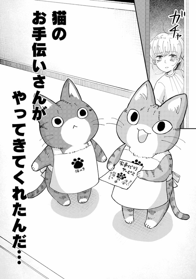 仕事に疲れた夜、偶然見つけた「家事代行サービス」のチラシに目が止まる【家政婦よんだら猫がきた #2】