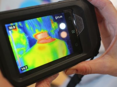 パールネックレスを試着して、熱を可視化できるサーモグラフィカメラで撮ってもらいました。