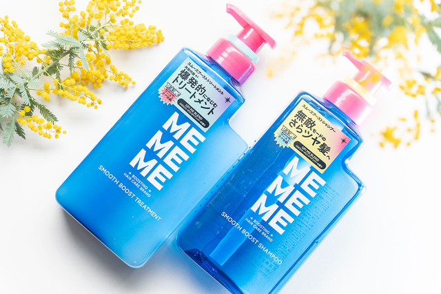 髪を洗う時間は短くても、理想のサラツヤ髪に仕上げてくれる花王「MEMEME」の「スムースブーストシャンプー&トリートメント」。