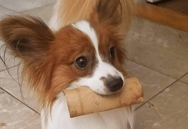 なかには、トイレットペーパーを使い切った後の「芯」を、まるで宝物のように自慢げに持ち歩くワンちゃんもいるようで……。
