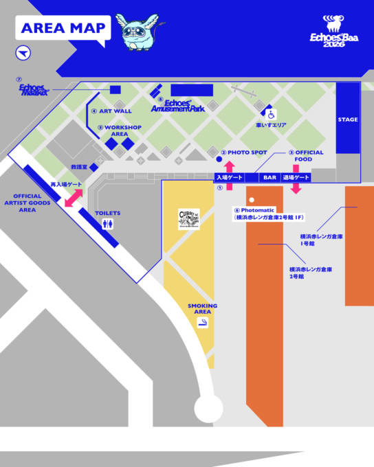 ■イベント名:Echoes Baa会場:横浜赤レンガ倉庫 赤レンガパーク特設会場開催日:2026年4月4日(土)、5日(日)開場・開演:各日11:00開場/12:30開演料金:11,000円(税込)主催:CENTRAL実行委員会URL:https://central-fest.com/s/central/page/eventechoesbaa_2026※開場開演時間は変更になる可能性あり ■Echoes Amusement Park 体験時間●ゲームブース/クレーンゲーム4月4日(土)11:00-20:004月5日(日)11:00-20:00対象:チケット所持者のみ/クレーンゲーム有料BIGぬいぐるみ~WA!~ 1プレイ200円おやすみピローマスコット 1プレイ100円すっぽりソックスマスコット 1プレイ100円