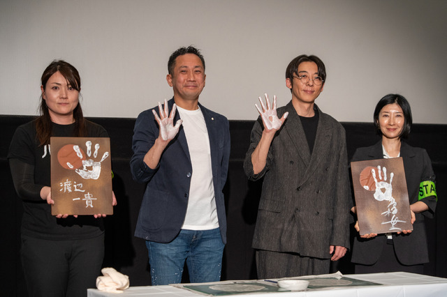 続けて、「僕は“高橋一生病”的なところがあります(笑)。テレビアニメや本などを読んでいると、これを一生さんが演じたらどうなるんだろう!? と考えちゃって」と、さらなる高橋へのあふれる愛を吐露する場面も。『岸辺露伴は動かない』シリーズもそうだったようで、高橋も「すぐにメールをくださいましたよね。本当にありがたいことです」と笑顔を見せる。渡辺は「自分のクリエイティブの源泉になる、本当に大事な方」と“高橋一生病”全開のトークを続けた。なお、映画の聖地である岡山“ハレウッド”で撮影された本作にちなみ、日本遺産にも認定されている伝統的工芸品の備前焼に、手形とサインを入れる式典を実施。