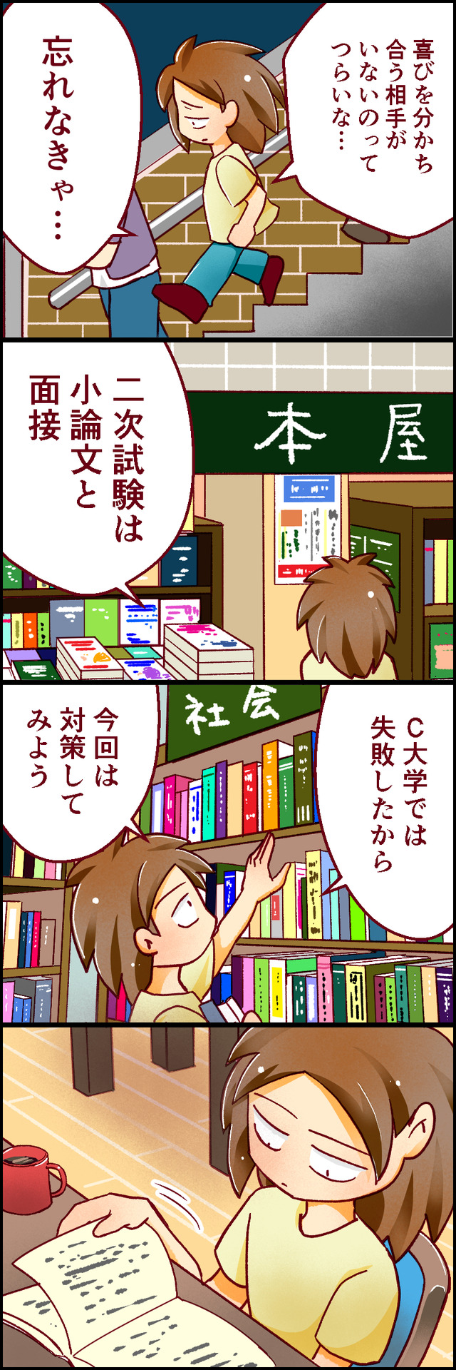 カレのこと忘れなきゃ…と思いながら向かった先は、本屋さん。論文と面接対策の資料を探しに来たのでした。