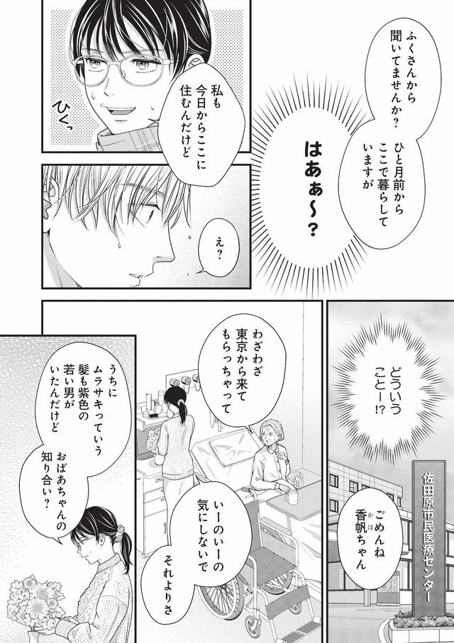 祖母を頼って田舎を訪れると、そこには見知らぬ紫色の髪のイケメンが住み着いていて、なぜかふたりで同居することに――!?