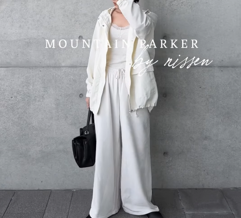 今の時期に気になる花粉や紫外線。そんな季節の悩みを軽やかに解決してくれるのが、高機能なマウンテンパーカーです。mi___.5さんは、撥水やUVカット、さらには花粉ブロック加工まで施された優秀アウターを主役に、全身をホワイトでまとめたクリーンな装いを提案。オーバーシルエットのブルゾンは、裾を少し絞ることで丸みのある旬のフォルムにアレンジしています。お尻が隠れる丈感のパンツを合わせることで、体型カバーをしつつスタイルアップも抜かりなく。