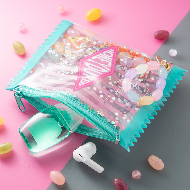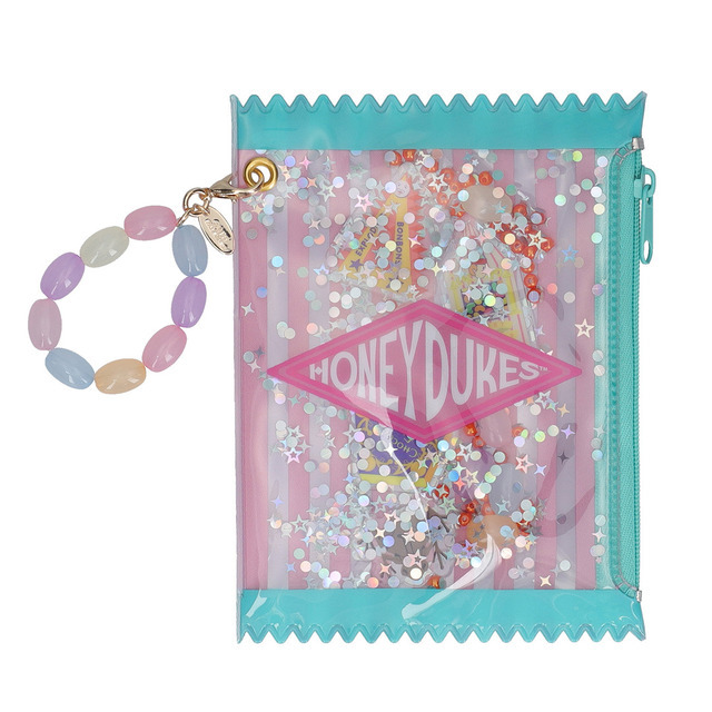蛙チョコレートやバーティー・ボッツの百味ビーンズ、爆発ボンボンなど「ハニーデュークス」で販売されている定番のお菓子のモチーフを詰め込んだポーチ。振ったり傾けたりすることでモチーフ同士がシャカシャカと音を立て、ビーズやラメがキラキラと輝く。リップや絆創膏、薬などを収納可能なサイズ感で、中身が見えるクリア仕様だ。