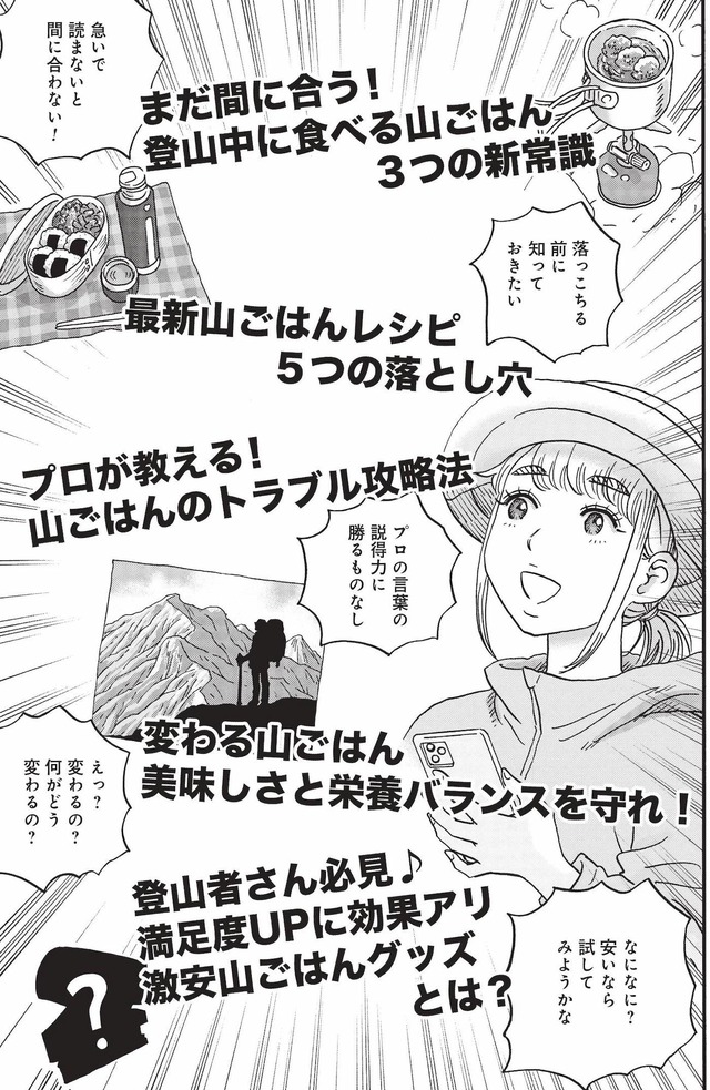 欲張りウィンナー麺、雲上の楽園コーヒーなどなど…。読むとお腹がすいて、山に登りたくなるアウトドア漫画