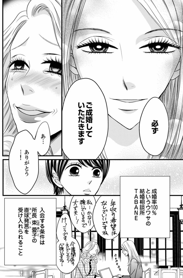 意気消沈する結衣だが、成婚率100%の伝説の婚活コンシェルジュ・束愛子との出会いがきっかけで人生の転機が訪れる――。