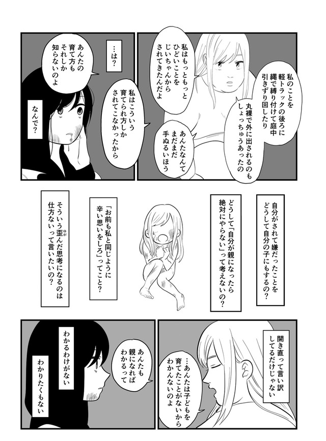 地獄のような生活の中で、つつみは自分を守るために必死にもがき、母親からの支配から抜け出そうと決意する。