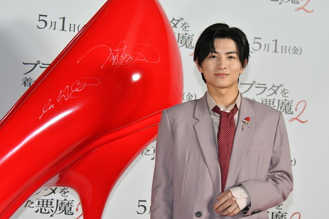 春らしいピンクラベンダーのスーツ姿で登場した柏木悠(超特急)は「『プラダを着た悪魔』は、自分の中の自信をつけてくれる作品。(自分が)やっていることの背中を押してくれるところが好きです」と笑顔を見せた。
