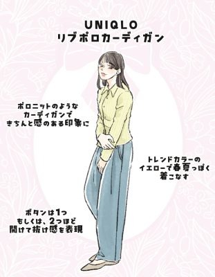 今っぽさがでる、ユニクロ リブポロカーディガン