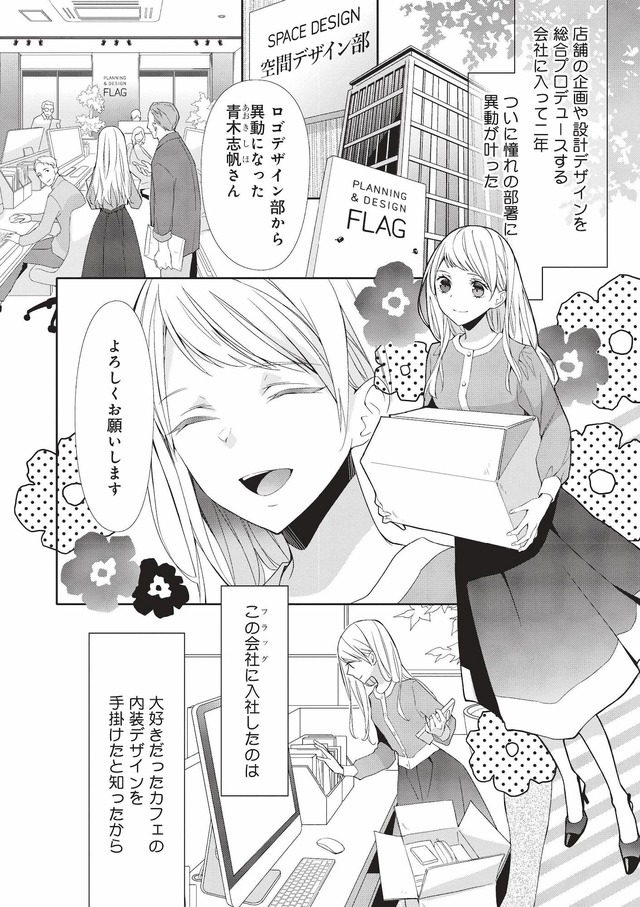 プライベートではおしゃれとは無縁の青木志帆。店舗プロデュース会社で働く、恋より仕事に夢中な24歳。