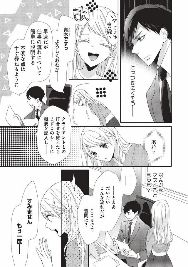 入社2年、ついに憧れの部署に異動!そこで出会ったのは、威圧感のある男性で…【青木志帆は恋が下手。 #1】