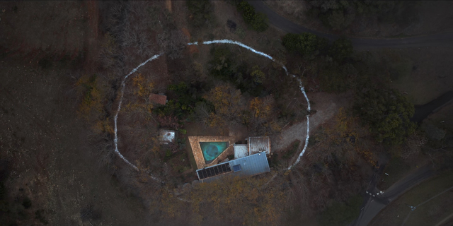家の周りを大きく囲むように地面に描かれた「巨大な円のモチーフ」が意味するものとは何か。そして、驚きのあまり目を見開くアンディが目にしているものとは?