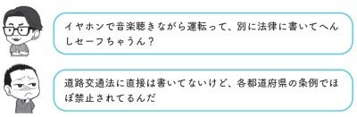 道路交通法には確かに「イヤホン禁止」の明文規定はありません。でも「だから大丈夫」と思っていると、痛い目に遭うかもしれません。