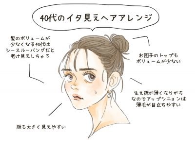 40代は大人の女性としてより深みを増す年代。これまで以上に美しく知性と品を兼ね備えた大人の女性へと進化し続けたいものです。だからこそ大事なのは自分を知ること。安易にだれかの真似をしたり、かつて好きだったスタイルに固執するとイタ見えを招いてしまうかも……。そこで今回は、40代が真似てはいけないイタ見えしやすいヘアアレンジをご紹介します。