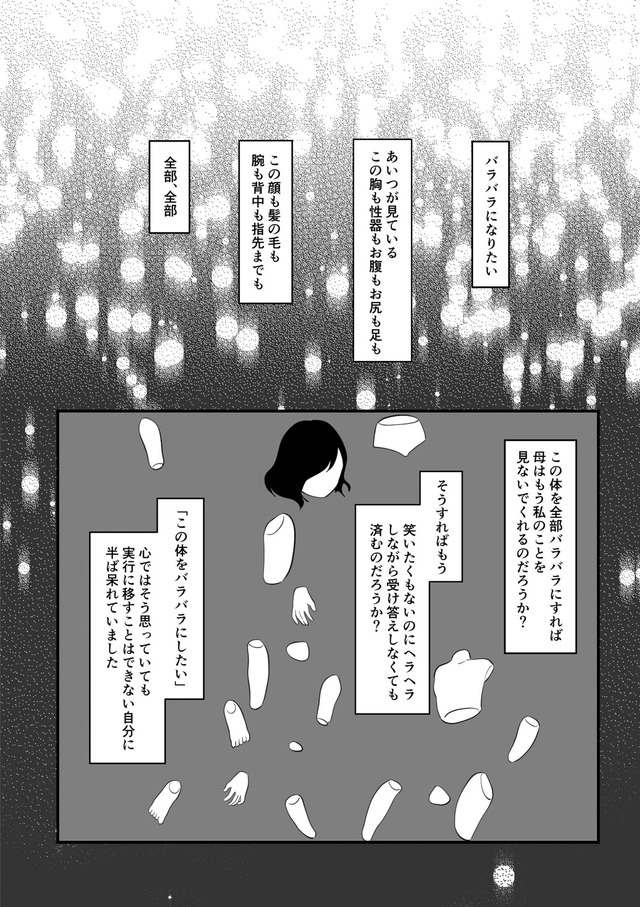 地獄のような生活の中で、つつみは自分を守るために必死にもがき、母親からの支配から抜け出そうと決意する。