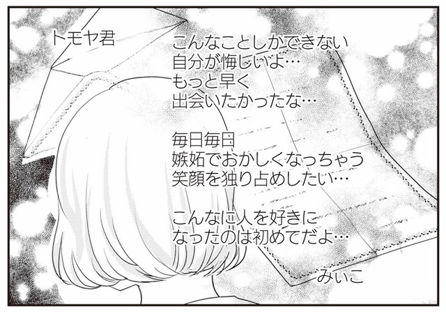 やがて体調が安定し、退院前日にトモヤから「明日迎えに行く」と連絡が入るが、当日時間になっても姿を見せない。