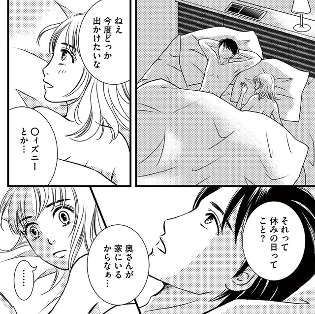 彼に家庭があると知り一度は思いを断ち切ろうと決意するが、彼がこぼした「妻に会う前に君に出会っていたら…」という言葉に心が大きく揺れ動く。