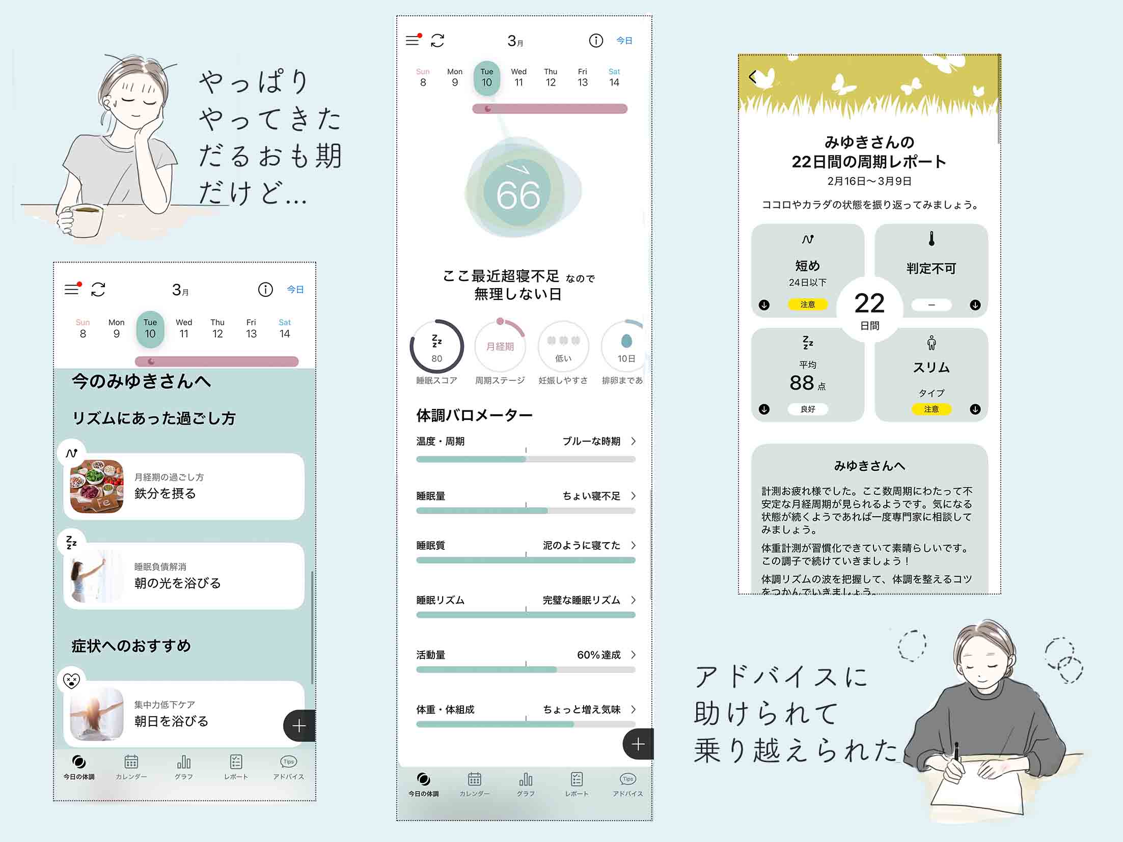 あらかじめ「不調がくるかも」と知っていると、いざ不調に見舞われても納得感があることに気づきました。気持ちも落ち込まず、「あと2日で乗り切れるんだな」とわかるのがとっても心強かったです。