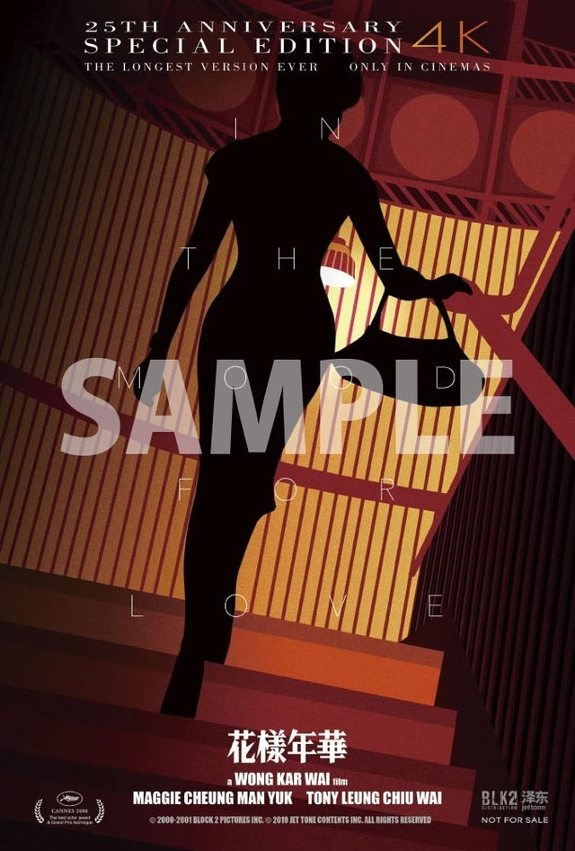 また、5月1日(金)より一部上映劇場にて来場者先着プレゼントとして、ステッカーの配布が決定。5月1日(金)からの1週目はマギー・チャンのシルエットをモチーフにしたビジュアル、5月8日(金)からの2週目はトニー・レオンのシルエットをモチーフにしたビジュアルを使用したステッカーが配布となる(無くなり次第終了)。