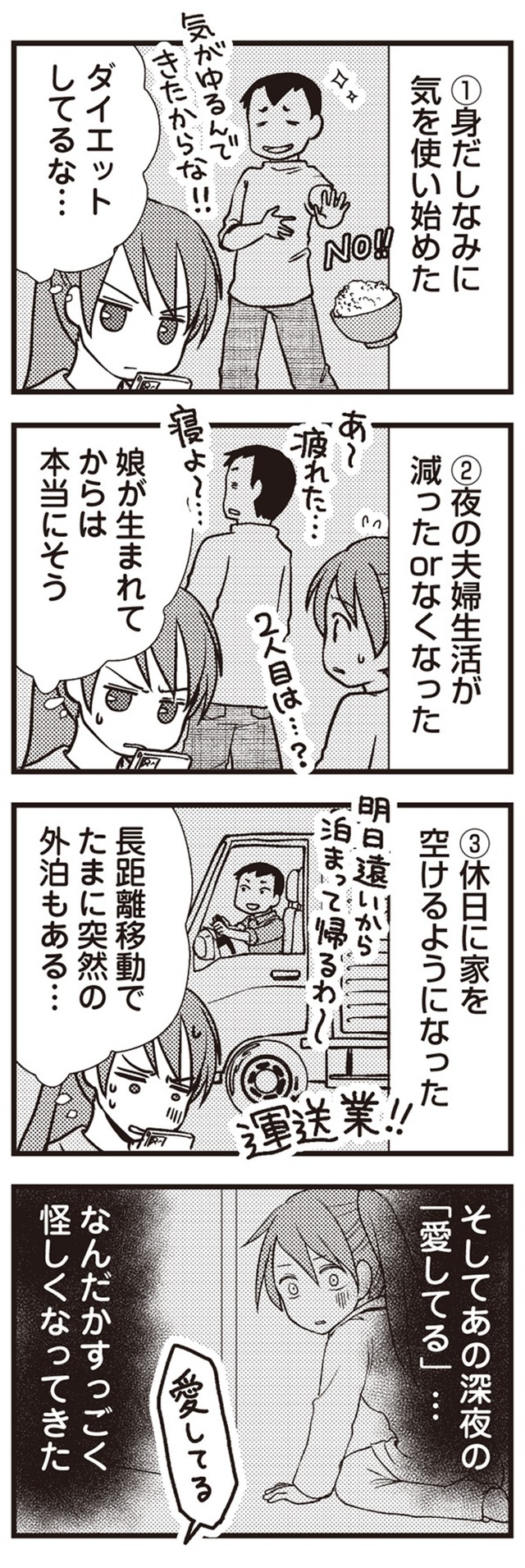 だがある夜、寝室から聞こえた「愛してる」の一言で、夫の不倫を疑い始める。