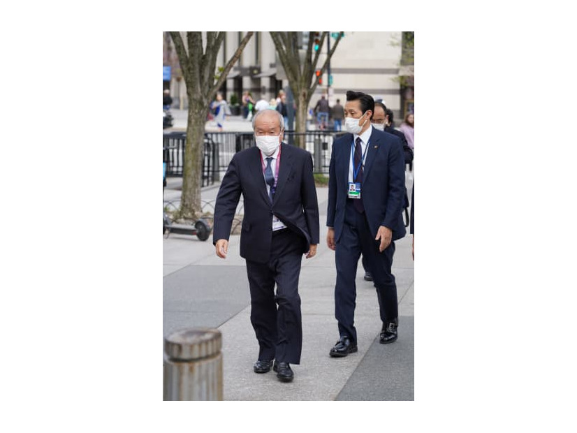 日米財務相会談に向かう鈴木俊一財務相=21日、ワシントン(共同)