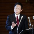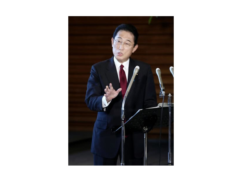 記者団の取材に応じる岸田首相=6日午後、首相官邸