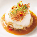 「ドーバーソールのリゾット」。蒸してからポワレしたドーバーソールのフワッとした口当たりが印象的。イタリア米に丸麦を加えて食感をプラスしている