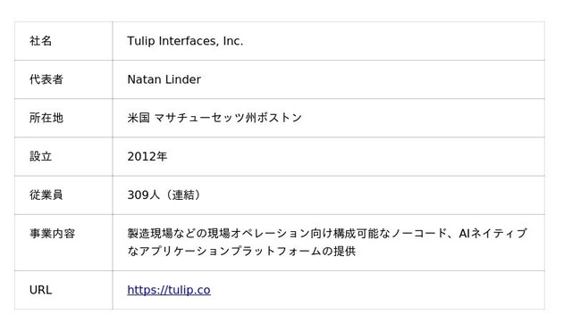 「Tulip社の持つコンポーザブルなプラットフォームの開発技術により、現場の要求するスピードや柔軟性に対応することが可能となります。両社が保有する技術を掛け合わせることで、DXとイノベーションを加速させ、製造業の枠を超えた競争力の強化を目指します。」