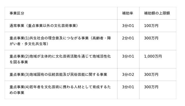 令和8年4月25日から令和8年10月31日に事業を開始(公演の本番初日を迎える等)するもの。なお、令和8年11月1日以降に開始する事業については、後期募集(令和8年6月頃募集開始予定)となります。