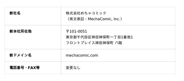 当社は、2013年の設立以来、様々なネットビジネス事業と共に成長してまいりましたが、今後は主力である電子コミック事業に一層経営資源を集中し、「株式会社めちゃコミック」として日本・世界の漫画産業のさらなる発展に貢献してまいります。